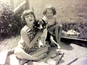 In the photo above, I am on the left at about age 7, my sister on the right at about age 6 and our pup Patty is center.